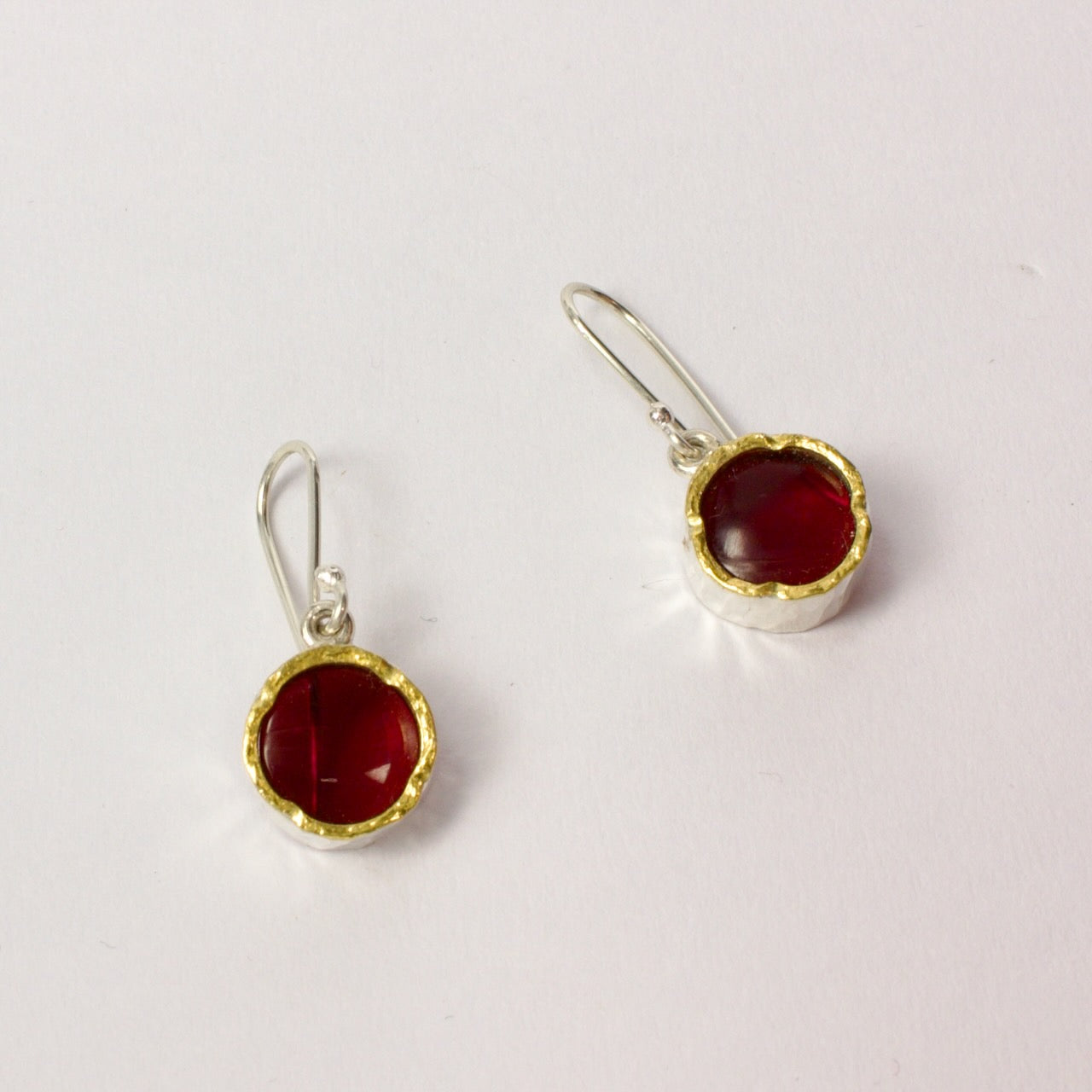 Antique red glass is set in David McLeod's iconic earring style with a bright edge of 22ct gold. The forged finish on the silver setting creates a faceted texture which constantly kicks off light as the wearer moves.