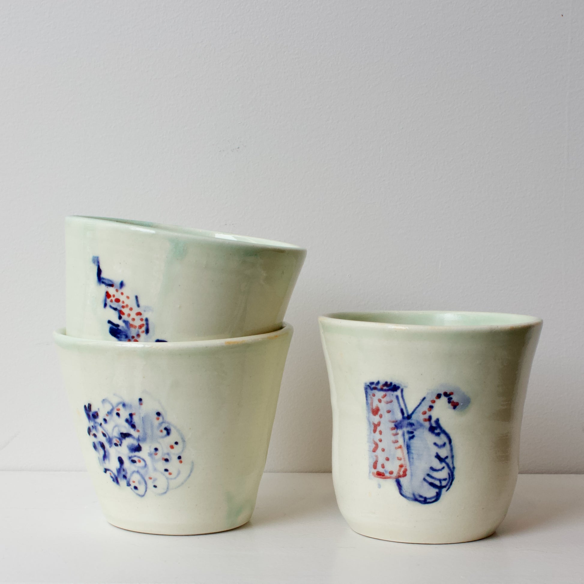 JLA41 / JLA43 / JLA44: Tumblers - Mint w/ blue & red design